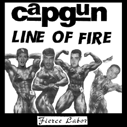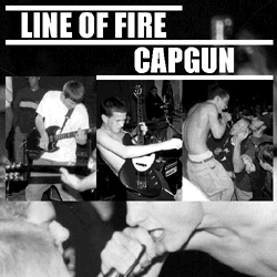 Line of Fire / Capgun split 7" The second Line of Fire 7". This is a split with Capgun from Long Island, NY. The Line of Fire side has 2 songs and the Capgun side has 3. So far, 1,500 have been pressed. 1st pressing (1,000) 200 on yellow vinyl, remaining 800 on black vinyl, blue and white labels, covers are offset printed, fold-overs 2nd pressing (500) black and white labels, first 200 have offset printed covers, the remaining 300 are made from photo-copied sheetse |